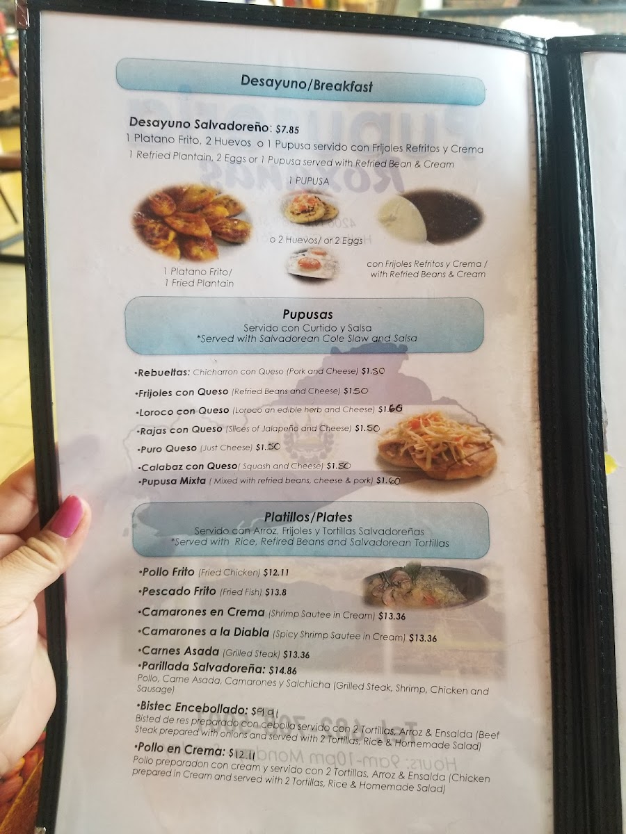 From a reviewer’s perspective, the menu at Pupuseria Roxana reflects a thoughtful balance between tradition, comfort, and variety, making it a satisfying culinary experience overall. The heart of the menu clearly lies in its handmade Pupusas, with classic options such as Rajas Con Queso, Calabaza Con Queso, Frijoles Con Queso, Revueltas De Chicharrón Con Queso, and the flavorful Pupusa Mixta, each showcasing authentic Salvadoran flavors through generous fillings and simple, well-loved combinations. For families, the Kids Menu keeps things approachable and familiar with 4 Nuggets De Pollo Y Papas Fritas Para Niños and 6 Nuggets De Pollo Y Papas Fritas Para Niños, making it easy to dine with younger guests. The Honduran Cuisine section adds depth to the menu, featuring hearty and traditional plates like Pescado Con Tajada De Plátano, Pollo Con Tajada De Plátano, Carne De Res Con Tajada De Plátano, as well as comforting staples such as Baleada Sencilla and Baleada Con Carne. Breakfast lovers are also well taken care of with filling options like Súper Desayuno and Desayuno Salvadoreño, which reinforce the restaurant’s focus on authentic Central American morning fare. For lighter bites, Nuegados stand out as a traditional snack, while the Drinks selection-ranging from Pepsi De Lata and Coca-Cola En Lata to Atol De Elote (Mediano) and Agua-complements the food without distraction. Finally, the Platillos section rounds out the menu with substantial dishes such as Pollo En Crema, Pescado Frito, Platillo Típico, Carne Asada, and the shareable Súper Parrillada (Para 2 Personas). Taken as a whole, the menu at Pupuseria Roxana feels cohesive and authentic, offering a comforting overview of Salvadoran and Honduran cuisine that leaves a strong, satisfying final impression.